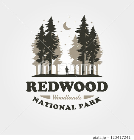 redwood vintage outdoor logo vector design, woodland symbol illustration design
