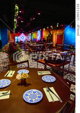Vibrant Mexican Restaurant Interior Colorful Decor and Dining Setup Eye-Level
