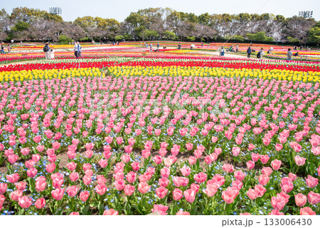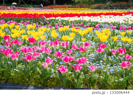 ネモフィラが寄せ植えされたチューリップ畑《三重県 なばなの里》