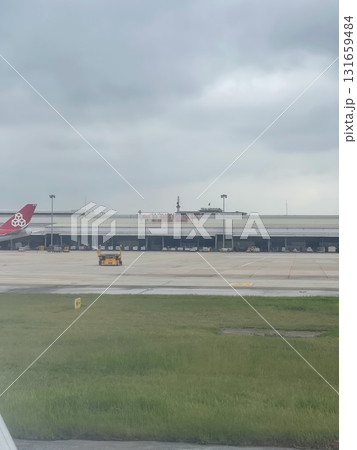 ベトナム ハノイのノイバイ国際空港に到着した飛行機の窓からの風景