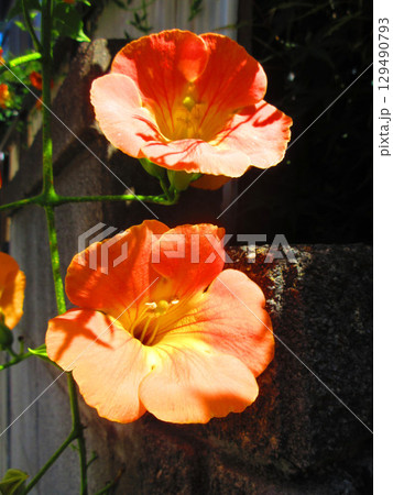 ノウゼンカズラ 橙色 オレンジ 色彩 野草 庭 ガーデニング