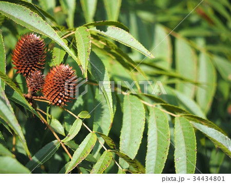 羽状複葉の若葉と棘で守られている果実・ノグルミ
