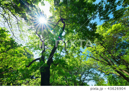ノグルミの木の若葉に新緑 光芒 小石川植物園