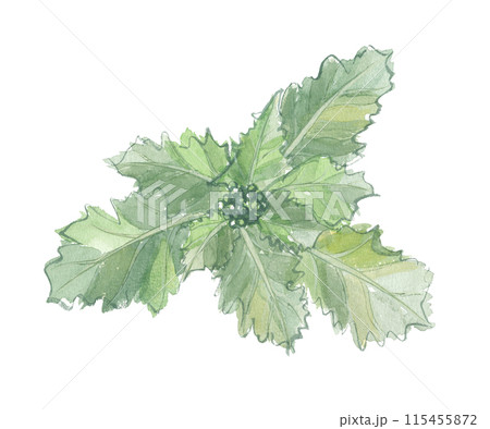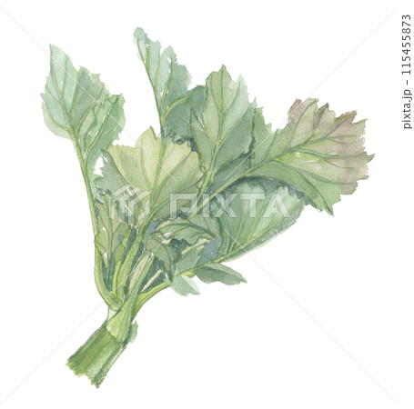 水彩で描いた のらぼう菜