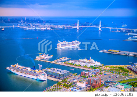 日本の横浜都市景観ノルウェージャン・スピリットやぷかりさん橋などを望む