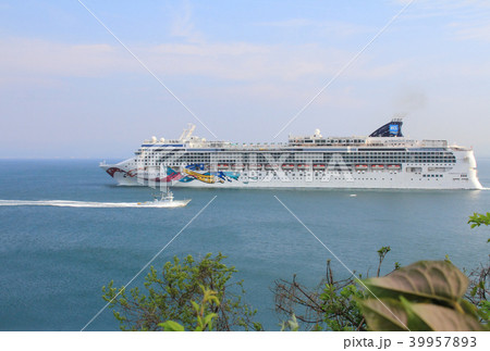 鳥取県境港市を出港し境水道を航行するクルーズ船 ノルウェージャン・ジュエル
