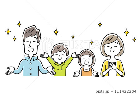ベクターイラスト素材:さわやかで快適な表現をする4人家族
