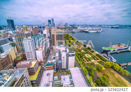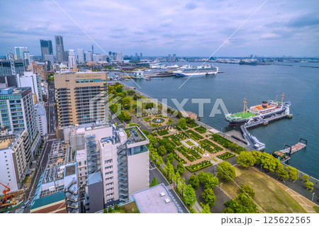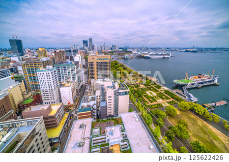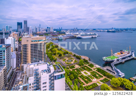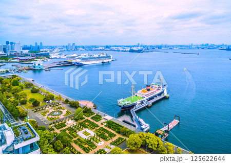 日本の横浜都市景観ノルウェージャン・スピリットやぷかりさん橋などを望む