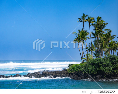 ハワイ きれいな海とヤシの木と青い空