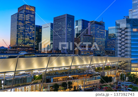 東京 千代田区 丸の内 東京駅の夜景(東京ミッドタウン八重洲 八重洲テラスより)