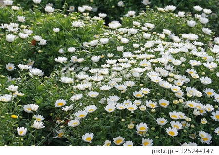 沢山咲いている白い小菊 ノースポール