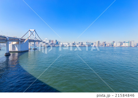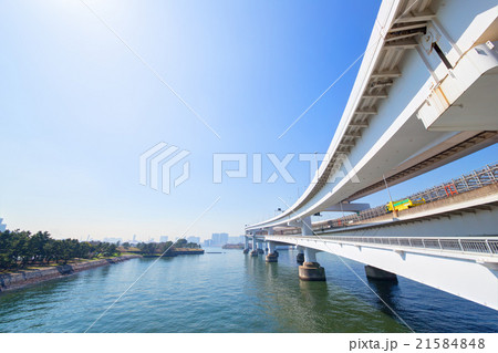 東京の都市風景 お台場レインボーブリッジ 遊歩道からの風景