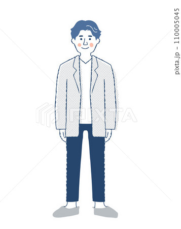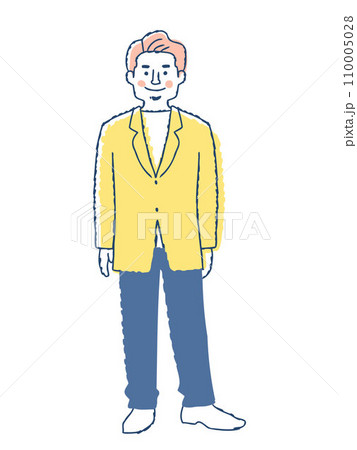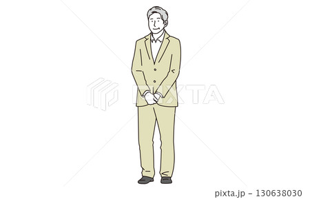 ノーネクタイのスーツの中年男性の立ち姿イラスト素材