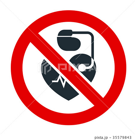 No pacemakers prohibited sign, forbidden modern round sticker, vector illustration