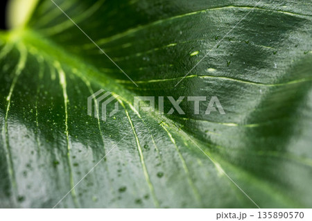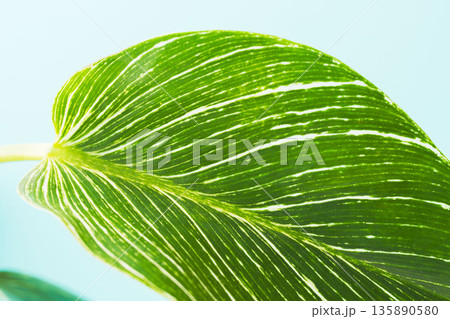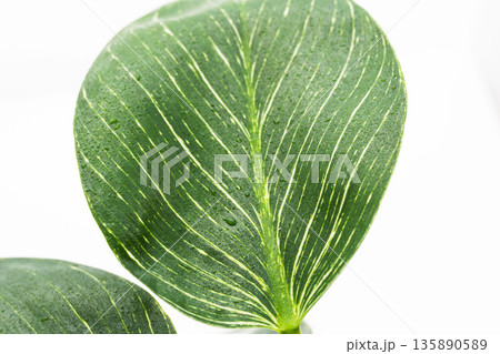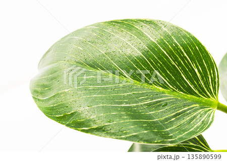 フィロデンドロンバーキンの葉を白背景でアップ撮影28