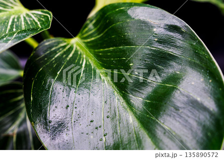 フィロデンドロンバーキンの葉を黒背景でアップ撮影03