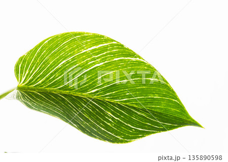 フィロデンドロンバーキンの葉を白背景でアップ撮影24百合, 花, ピンク, 咲く, 植物,