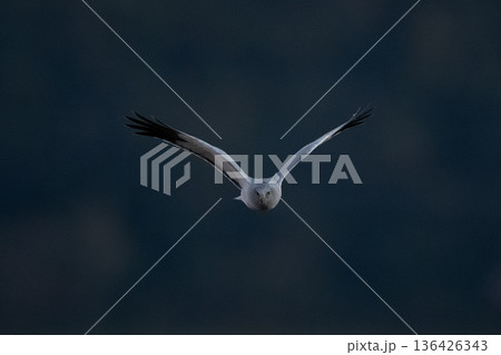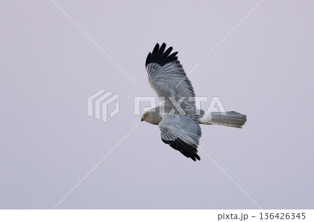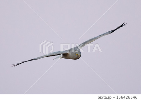 飛翔するハイイロチュウヒ