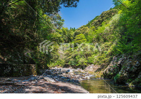 新緑の清滝川 渓谷美と高雄橋