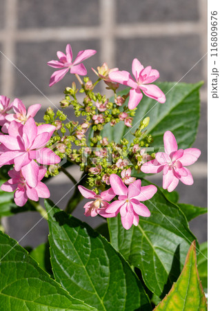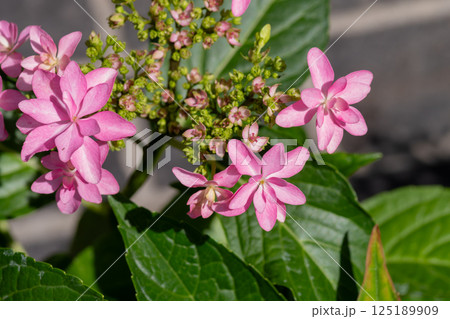 ピンクのアジサイのクローズアップ