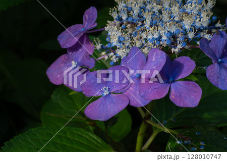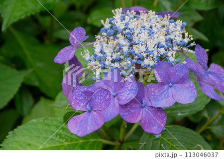 雨上がりの紫色のアジサイ