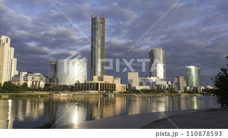 Sunrise on waterfront, Yekaterinburg City, Russia