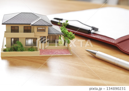 住宅模型を見てマイホームの間取りを検討する若い夫婦(後悔・失敗・悔やむ・維持費・税金)