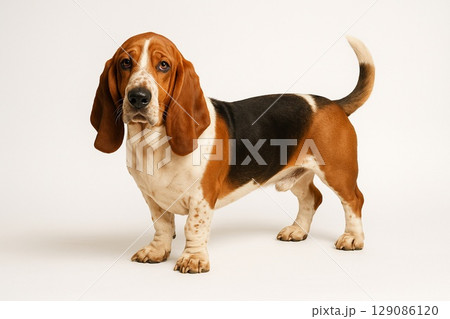 バセット・ハウンドの犬ポートレート - かわいいペットの油絵風画像