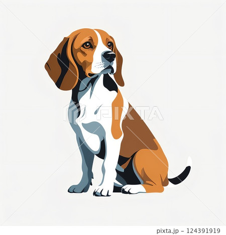 ビーグルの子犬が座ってこちらを見つめるイラスト