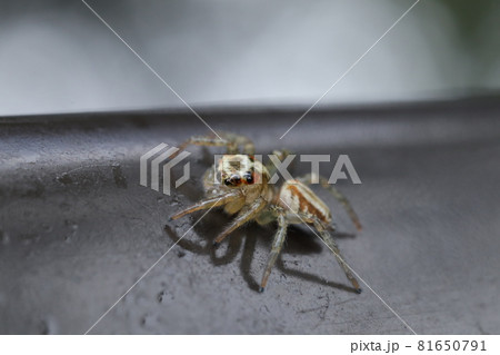 家の外壁を歩く蜘蛛 (シラヒゲハエトリ)