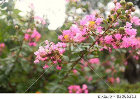 ピンク色のサルスベリの花が咲いています