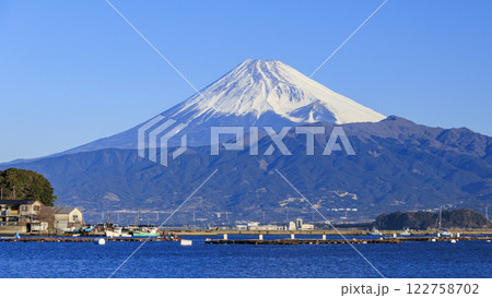 駿河湾から望む冬の冠雪した富士山
