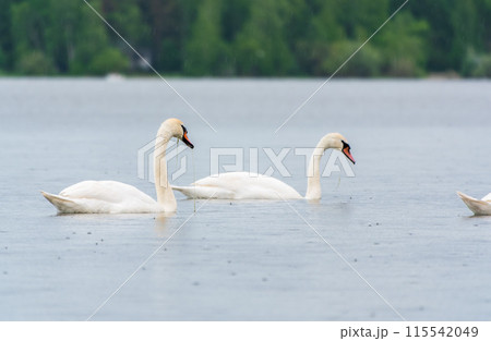 Two Graceful white Swans swimming in the lake, swans in the wild