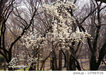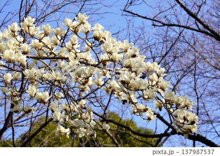 ハクモクレンと青空の風景