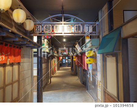 北海道函館市 函館駅前横丁の灯りと複合施設のハコビバ(HAKOVIVA)
