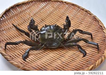 上海蟹と同族で脂がのったこの時期美味しい。生きたモクズガニの写真
