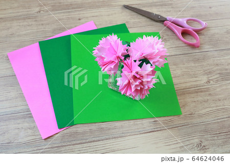 【ペーパークラフト】紙で花をつくる[人物なし・コピースペース・シンプル]