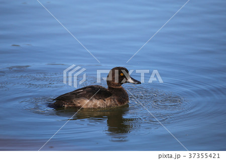 写真、水鳥 潜水カモのキンクロハジロの雌 渡り鳥で夜行性のキンクロハジロメス