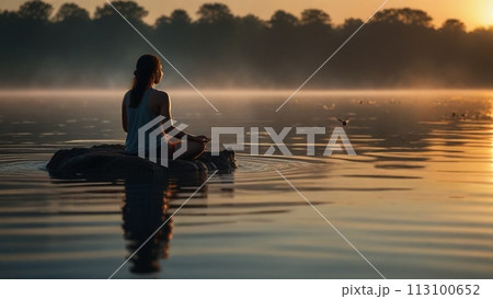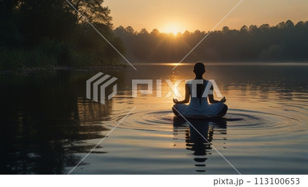 Woman practicing yoga at lake.Yoga and healthy lifestyle concept.