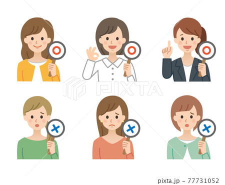 解答札を持つ女性のアイコンセットーシンプル線画のイラスト素材