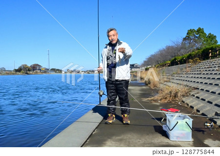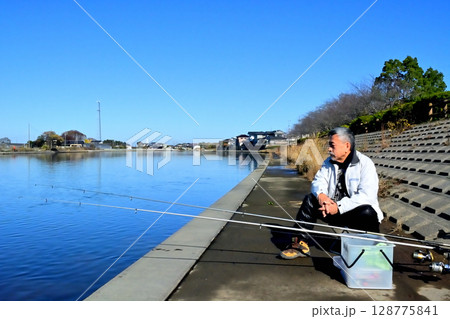 大洗駅から歩いて行ける桜町公園下の涸沼川で大洗駅から歩いて行ける桜町公園下の涸沼川で釣りをする釣り人