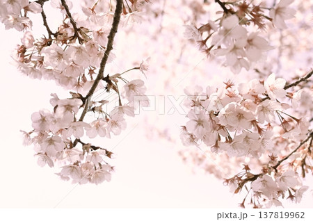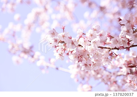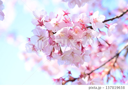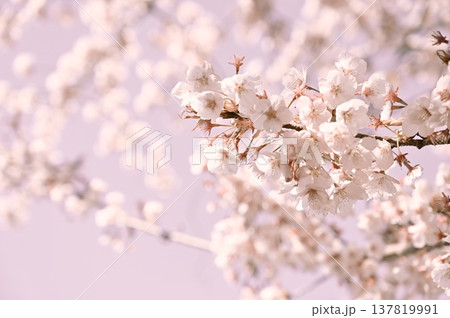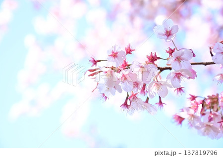 サクラの花と淡い色背景 ハチツカザクラ(カンヒザクラ系)