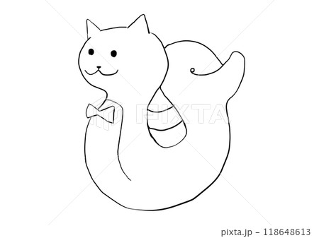 ペンで描いた手書きのかわいい猫みたいな蛇のモノクロ線画イラスト