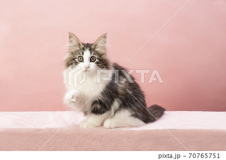 前足を上げるノルウェージャンフォレストキャットの仔猫