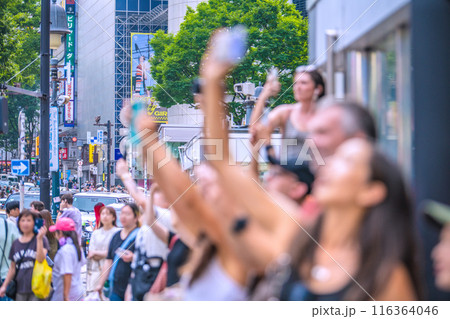 日本の東京都市景観明日へ突き進め…インバウンド続く、渋谷スクランブル交差点。いざ!、渋谷新時代へ