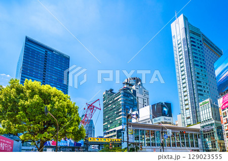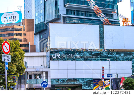 日本の東京都市景観 渋谷駅ハチ公改札新出入口や渋谷スクランブルスクエア、渋谷ヒカリエなどを望む