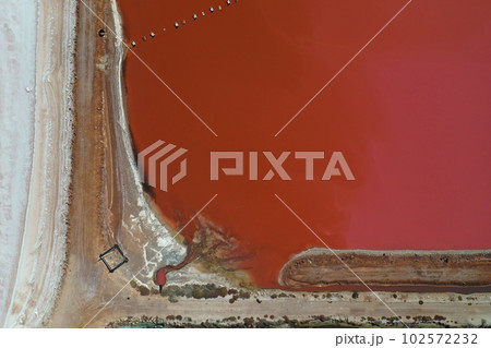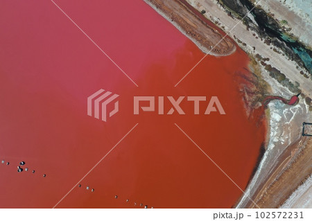 上空から撮影した美しいピンクレイク