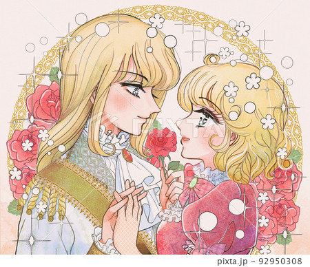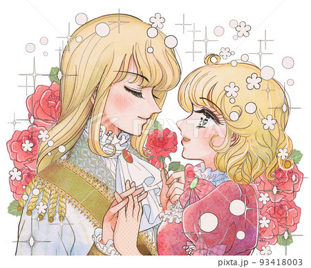 古い少女漫画風のイラスト・王子と姫、感動の再会
