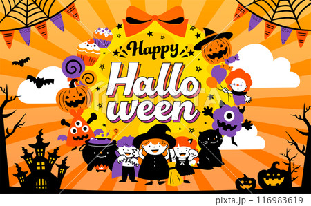 にぎやかなハッピーハロウィンのイラスト