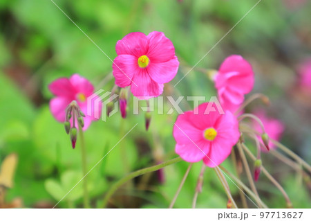 群生したピンクのかわいい花カタバミ科のオキザリス